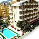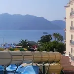 A Marmaris városi hotel úszómedencét kínál napozóterasszal és bárszervizzel a kellemes időtöltés érdekében.